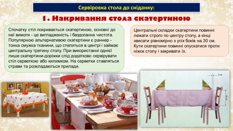 - СКАТЕРТИНИ, СЕРВЕТОК, ФОРМОЮ ЇХ СКЛАДАННЯ, ЗАГАЛЬНИМ ІНТЕР’ЄРОМ )