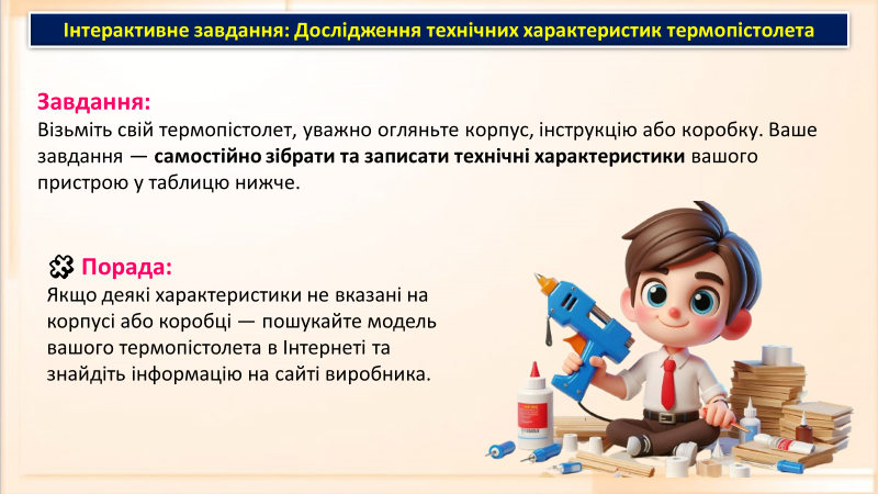 Тема. Як використовувати побутову техніку (побутові інструменти) без заподіяння шкоди навколишньому середовищу (клейовий пістолет, термопістолет)